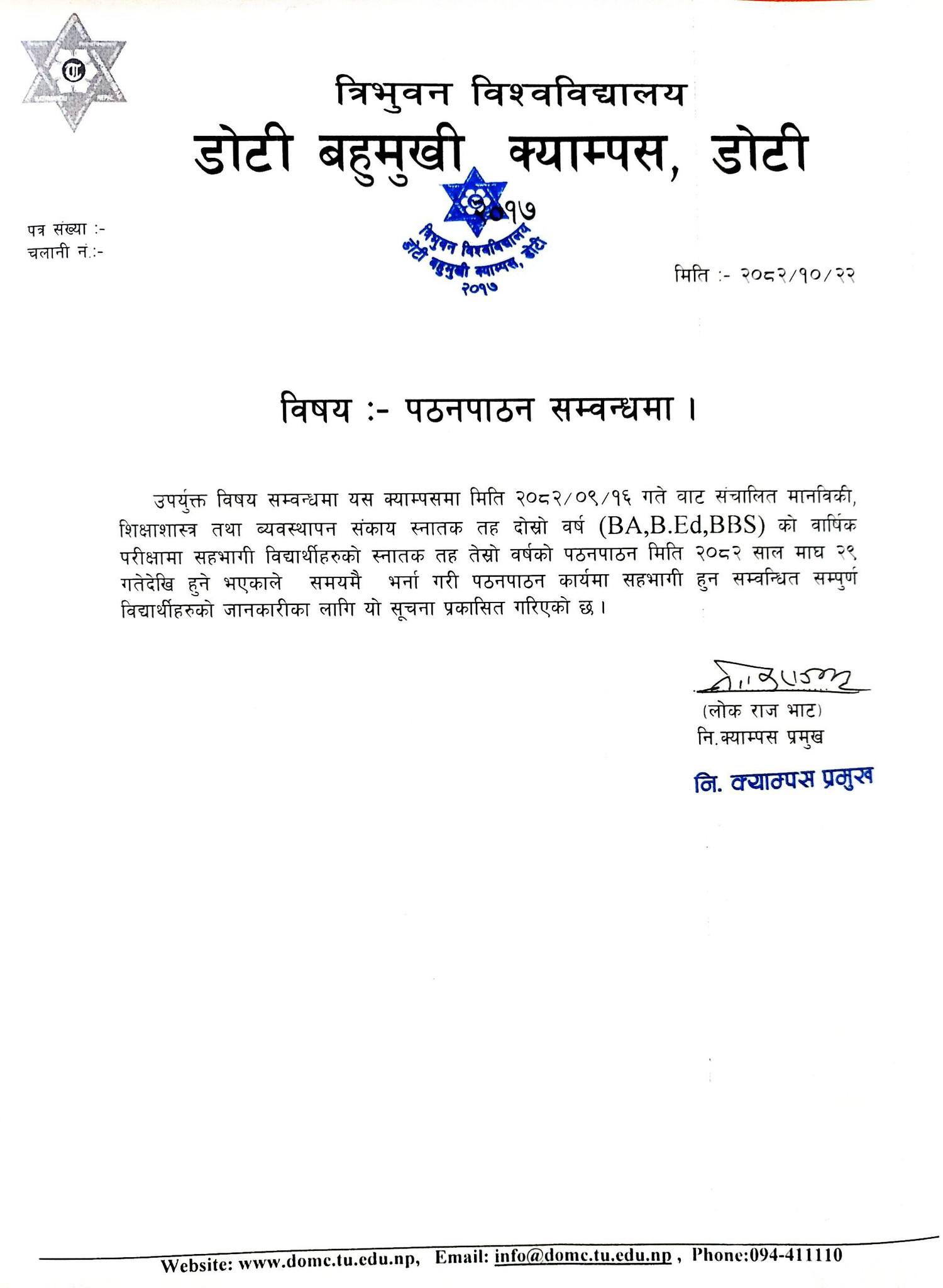 3 Years BA, BBS, B.Ed., B.Sc., BFA 2nd Year Chance...