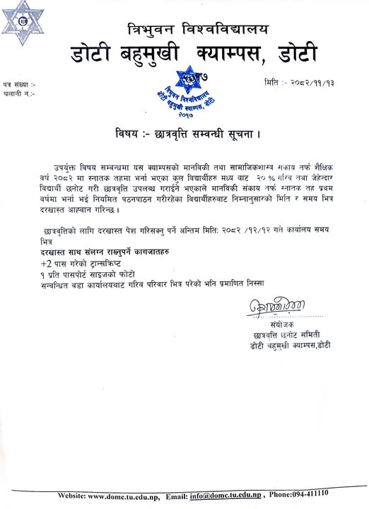 छात्रवृत्ती सम्वन्धी सूचना