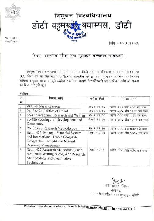आन्तरीक परीक्षा सम्वन्धी सूचना (BA)