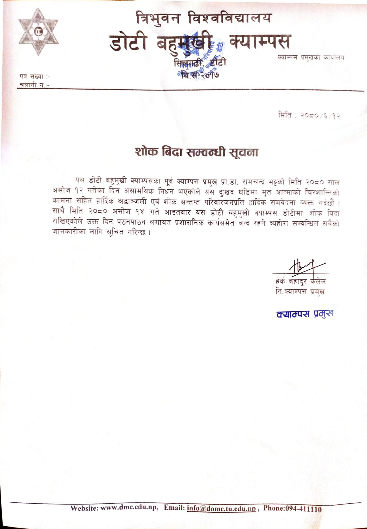 शाेक बिदा सम्वन्धी सूचना