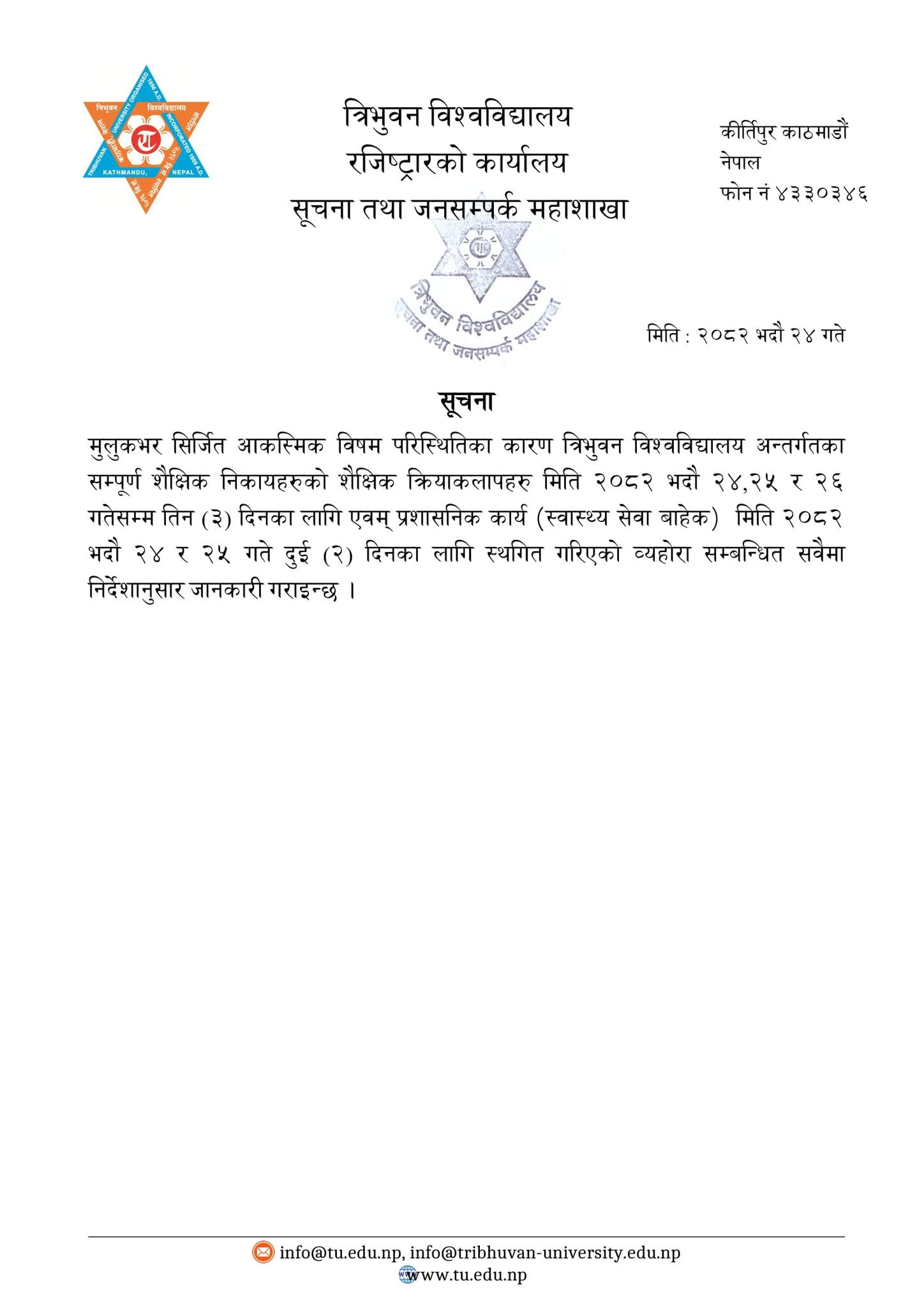 शैक्षिक एवम् प्रशासनिक कार्य स्थगित गरिएको सूचना